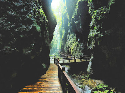 張家界朝陽地縫景區(qū)地處慈利縣朝陽境內(nèi),全長(zhǎng)5公里,垂直深度近200米。朝陽地縫為趙家埡庫區(qū)流水經(jīng)幾億年沖刷而形成的100多米深的崖縫,兩崖最窄處僅一米多寬,景色集奇、秀、險(xiǎn)、野、幽于一體。景區(qū)內(nèi)溪水清澈,空氣清新,冬暖夏涼,四季如春,是旅游觀光、避暑休閑、考察探險(xiǎn)的好去處。